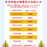 こんにちは! 年内も残すところわずかとなってまいりました‥⛄ 連休中に帰省や旅行など遠出をされる…